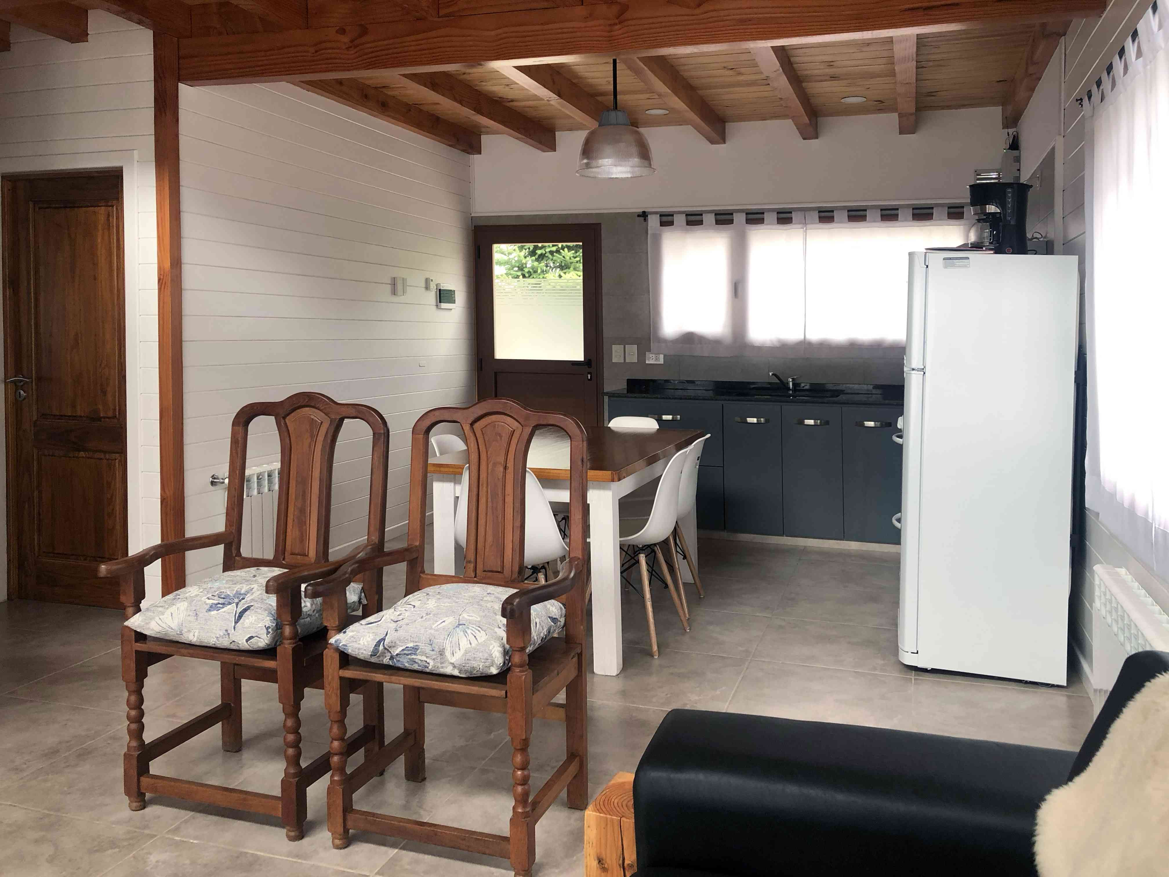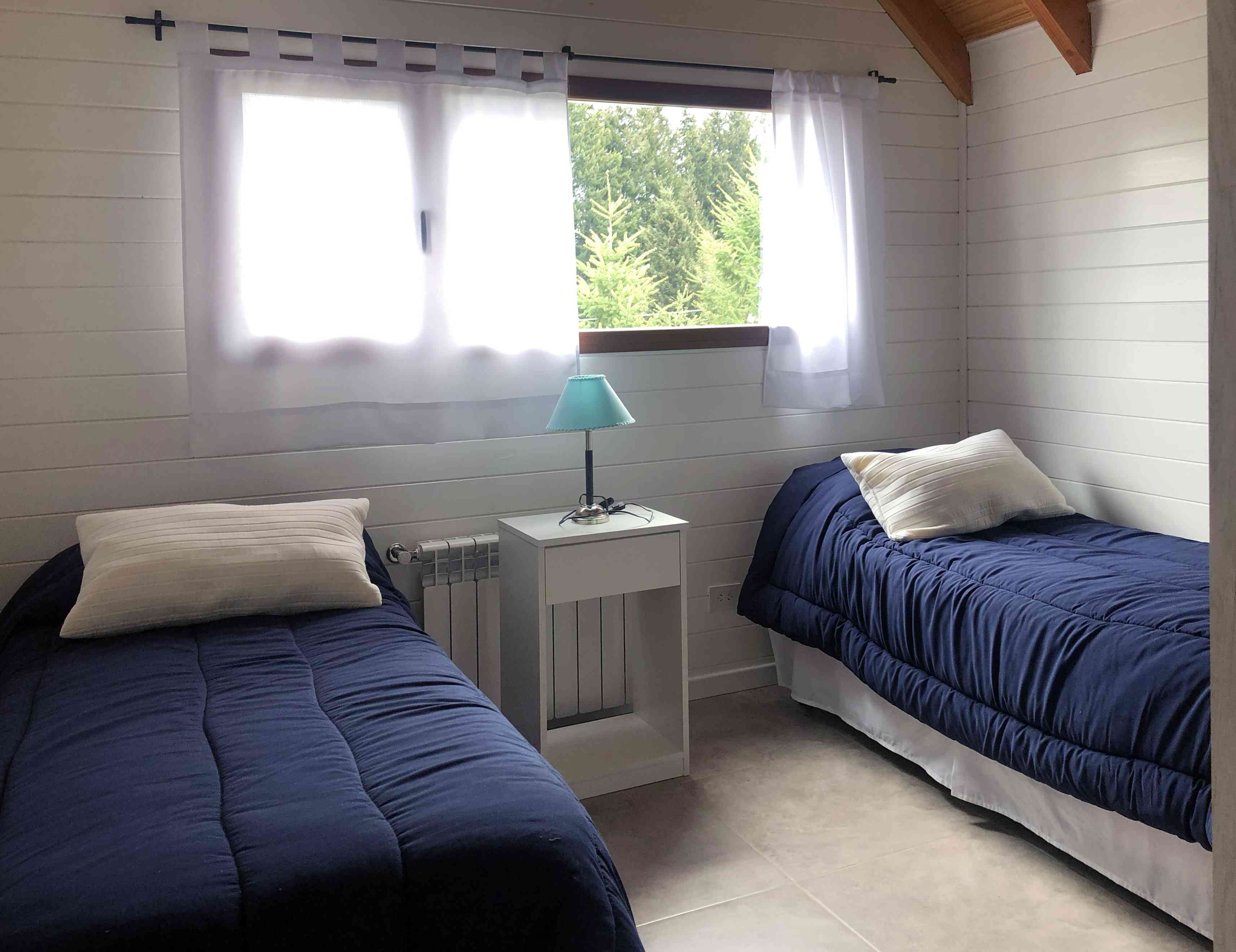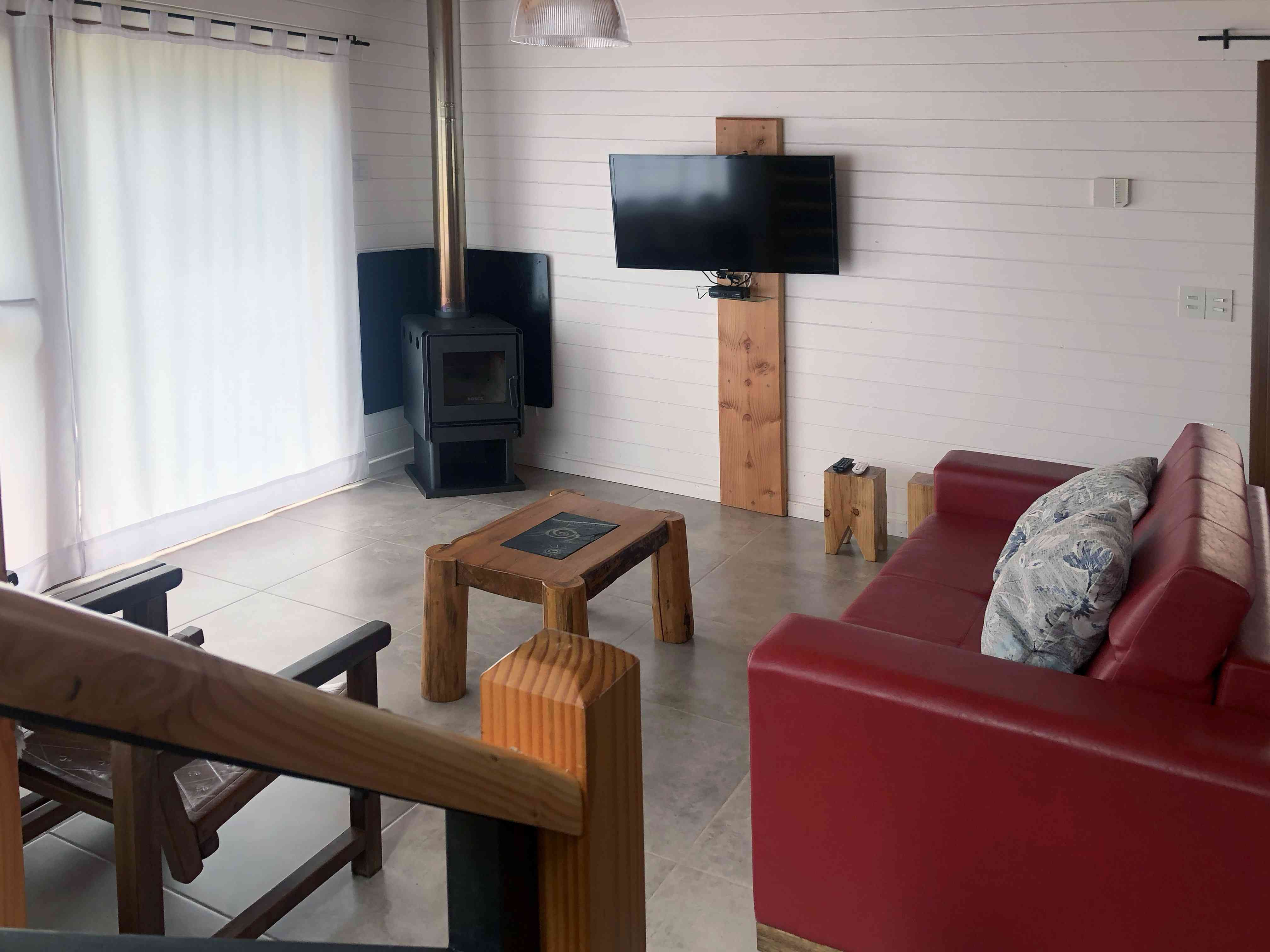 Cabañas de madera muy confortables, con hermosa estufa a leña y calefacción central. De muy fácil acceso, con vista a la montaña, a solo 2 km del acceso al cerro Bayo y a 600 m del lago Nahuel Huapi y 6 km del centro de Villa.
